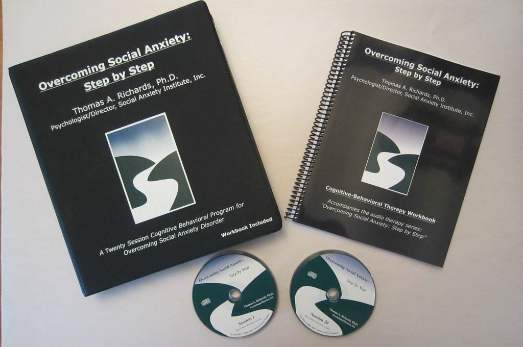 In addition to these twenty therapy sessions (cassettes or CDs), an accompanying workbook, also entitled "Overcoming Social Anxiety: Step by Step" was printed.
